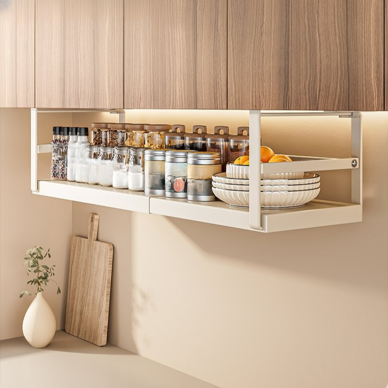 伸縮式廚房收納架 櫥櫃下懸掛分層置物籃 多功能調味料收納神器